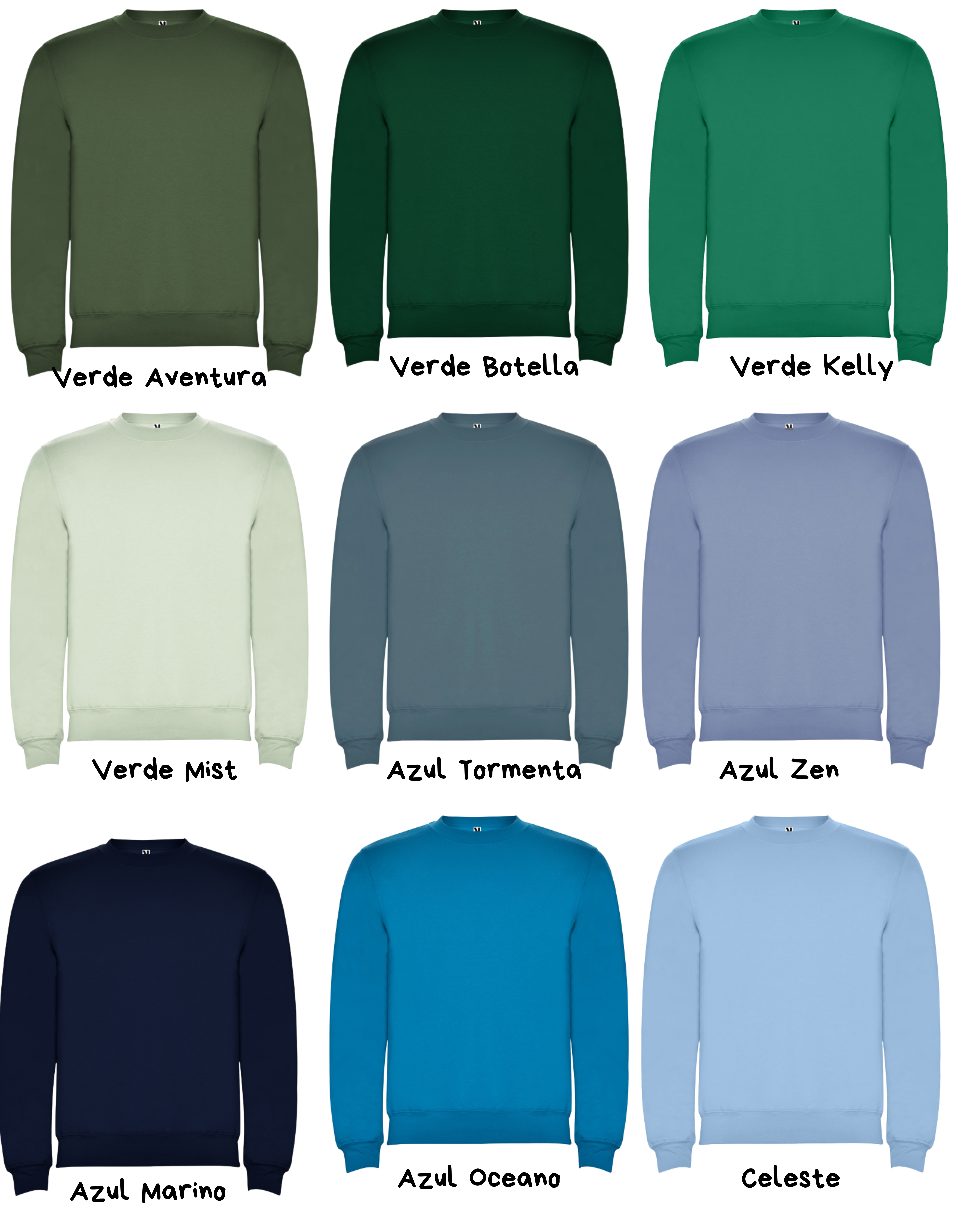 50% algodón / 50% poliéster, felpa perchada, 280 g/m². Color gris vigoré 58: 55% algodón / 40% poliéster / 5%