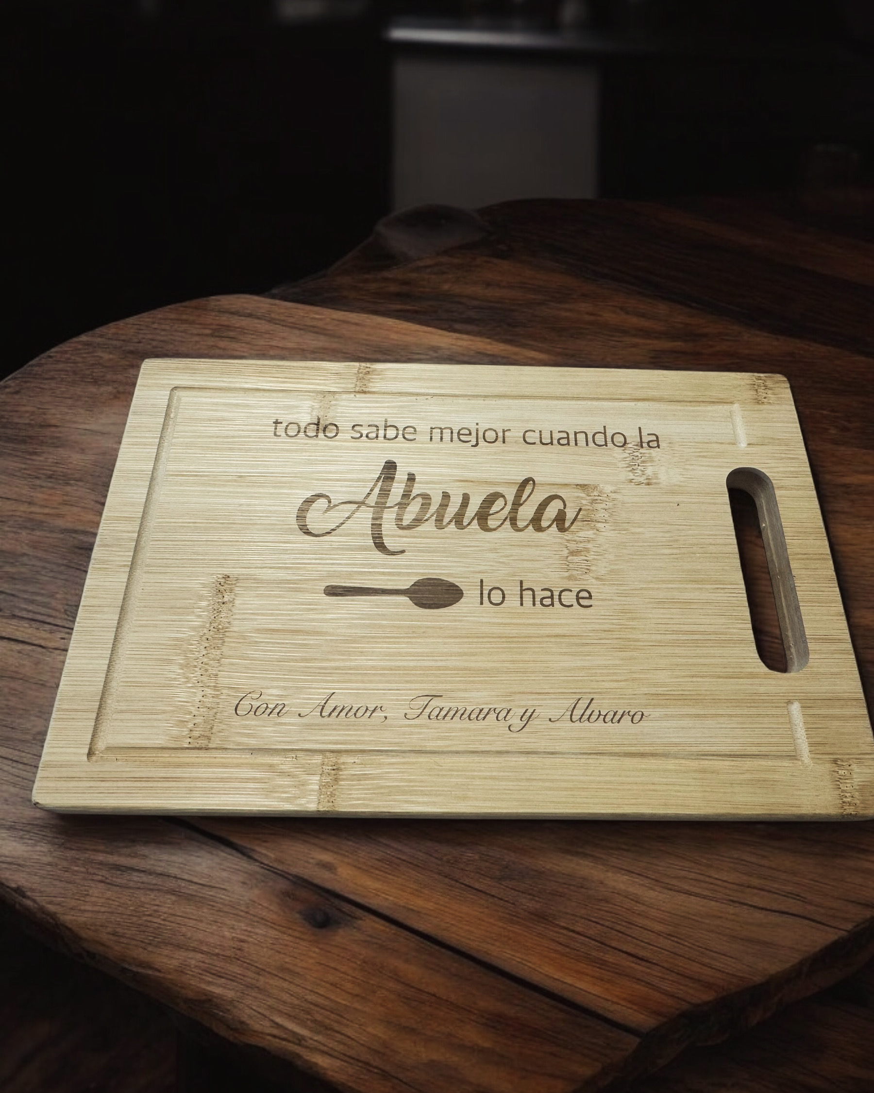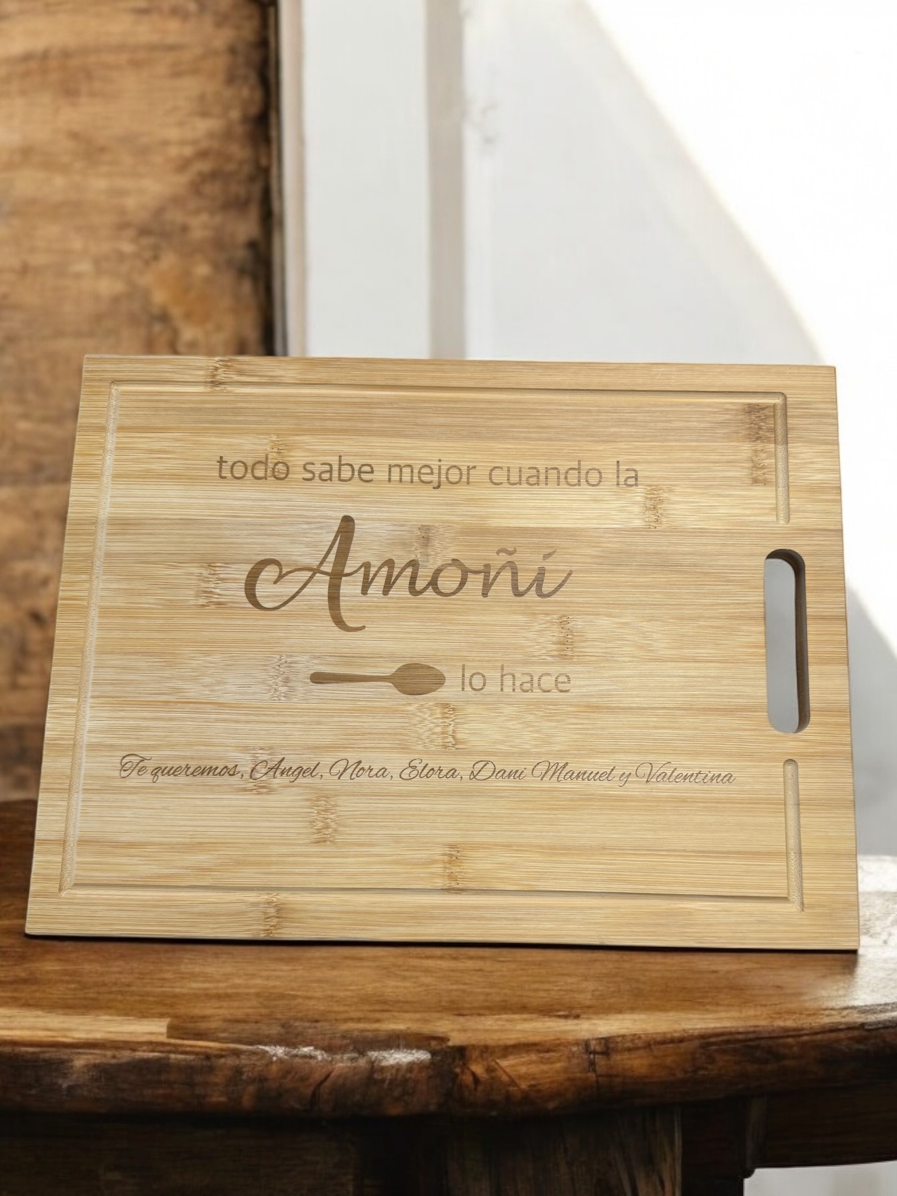 Os presentamos nuestra tabla de cortar de madera personalizada, con dos tamaños diferentes, el regalo perfecto para quienes amas. 💖 Diseñada con atención al detalle, cada tabla es única y puede llevar el nombre, una fecha significativa o un mensaje especial.